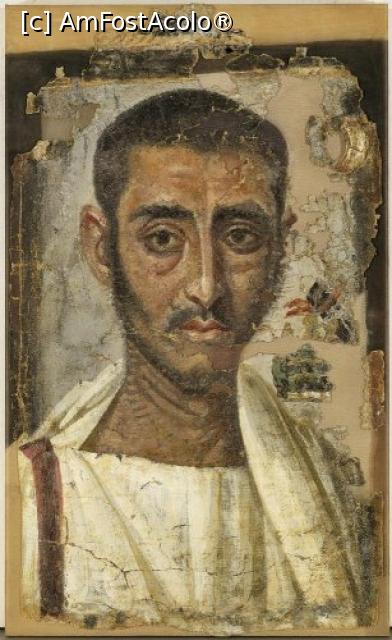 [P21] Portret funerar, Egipt, pictură pe pânză de in, sec. III d.C