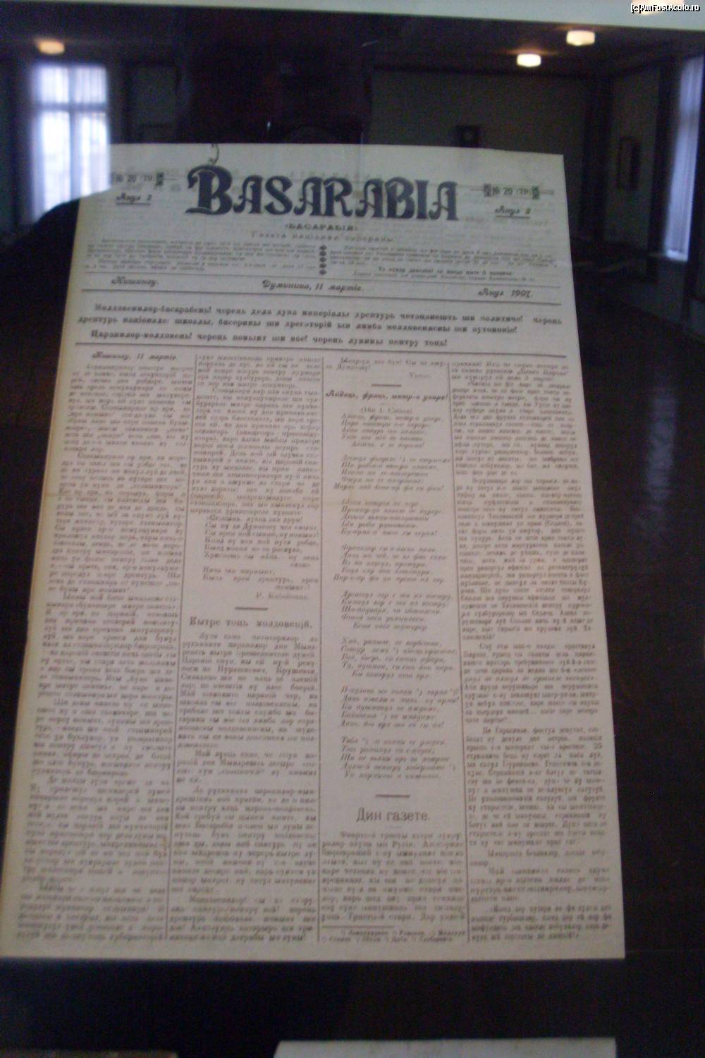 [P12] Exemplar al gazetei "Basarabia", scrisă în română, dar cu litere chirilice, în perioada ţaristă