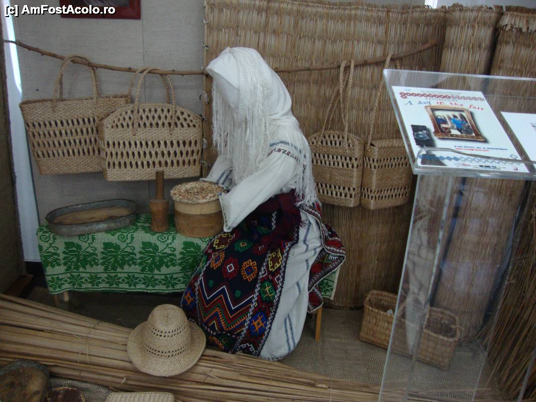 [P05] Ne plimbăm prin târgul tradițional dobrogean amenajat la parter; o precupeață vinde împletituri din papură.