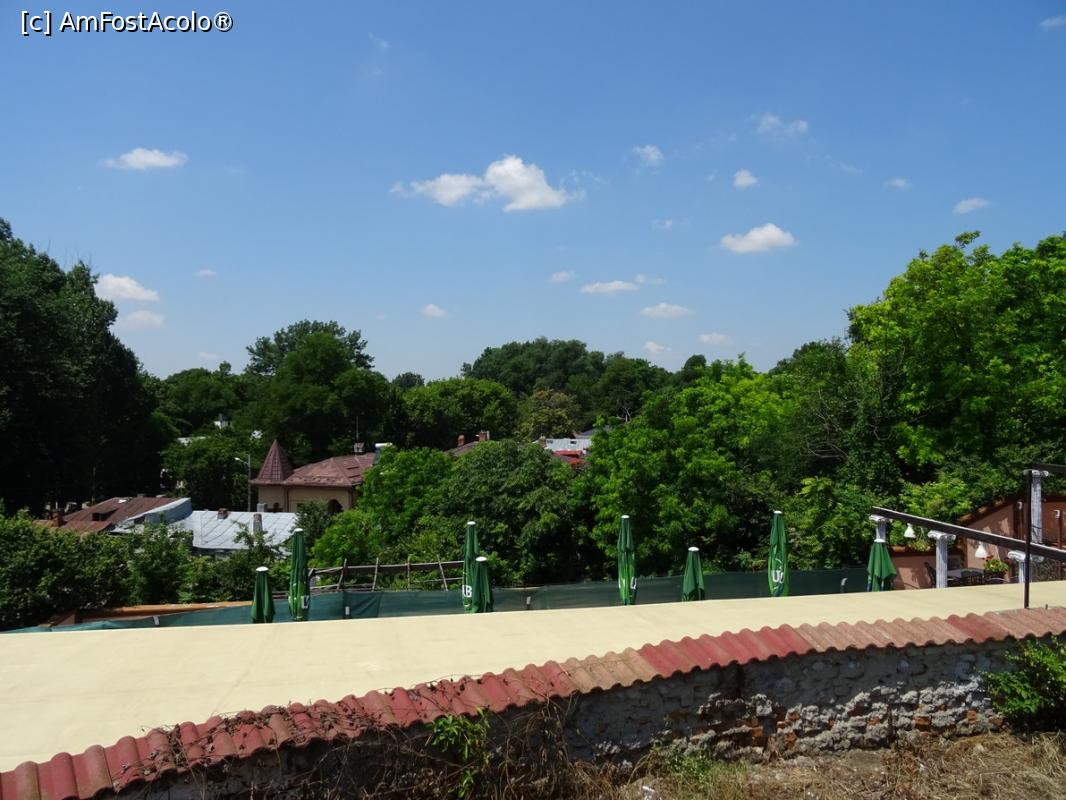 [P14] Zid (restaurat) din fosta curte domnească a lui Mihai Viteazul și vedere spre parcul Constantin Poroianu de pe dealul Protosenilor.