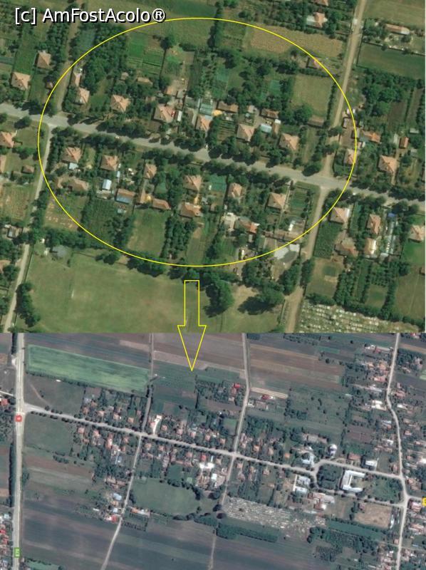 [P22] Satul model Dioști azi. Observați alinierea caselor si a anexelor. În stanga se observa stadionul si cimitirul trasate tot în perioada interbelică.