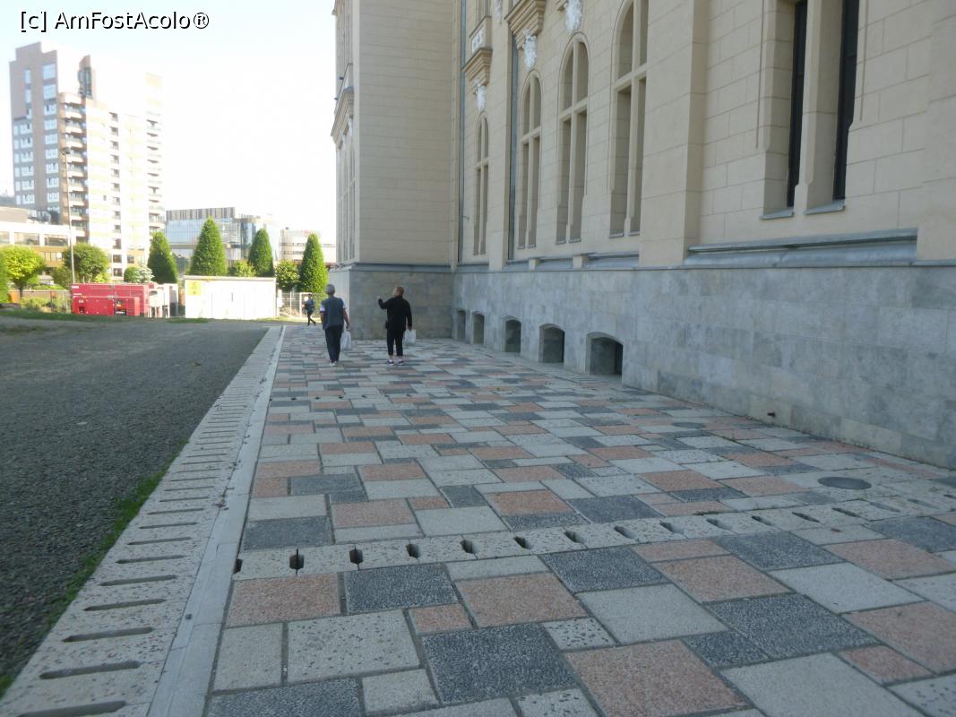 [P32] 32. Trotuarul ce înconjoară Palatul, cu dale de formă și culori diferite, și cu colectoare a apelor pluviale.