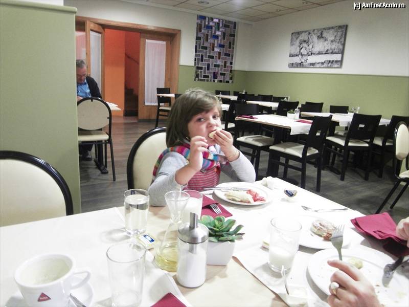 [P10] Sala de mese. Banuiesc ca mosul, era patronul. Intr-una din zile, ne-a facut el cafeaua. A fost foarte amabil.