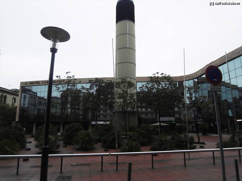 [P08] Vedere de la geam. O coloana cu un leu in varf. Piata se cheama Mercat del Lleo. Cred ca deasupra parcarii subterane, cladirea este un fel de piata...ceva a la Bouqeria. Nu-s sigur.