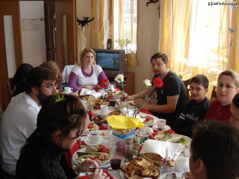 [P19] Frumoasa masa pe care ne-au pregatit-o gazdele in prima zi de Paste;eu desigur in capul mesei, deoarece nu mai aveam loc :-)