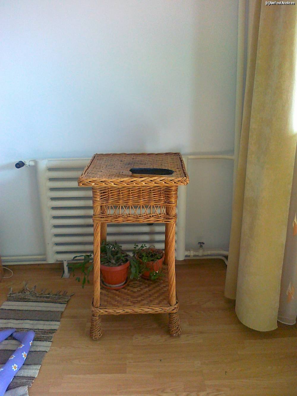 [P22] un suport din rachita, pentru flori; observati si caloriferul cu simt de raspundere, sanatos, din fonta