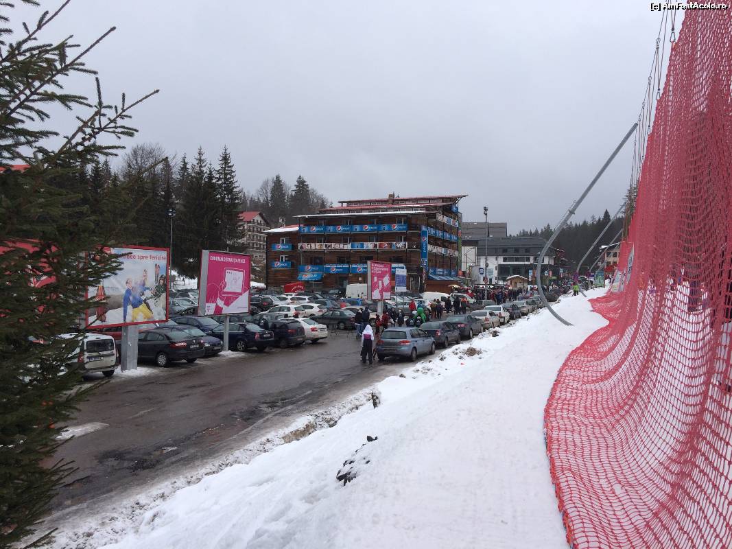 [P38] Parcarea de la baza partiei si plasa de siguranta care pastreaza toate saniile departe de masinile parcate pe marginea strazii
