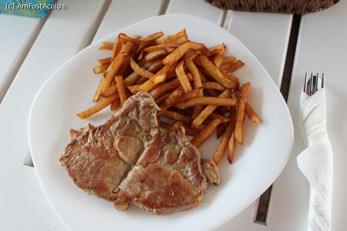 [P11] Pensiunea Casa Pescarilor Lunca, jud. Tulcea, Ceafă de porc la grătar cu Cartofi prăjiți, nu erau arși, buni la gust dar nu mi-a plăcut culoarea...