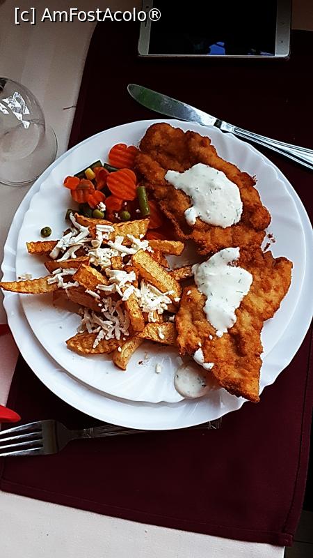 mancarea, snitel Prahovean, saramura de crap