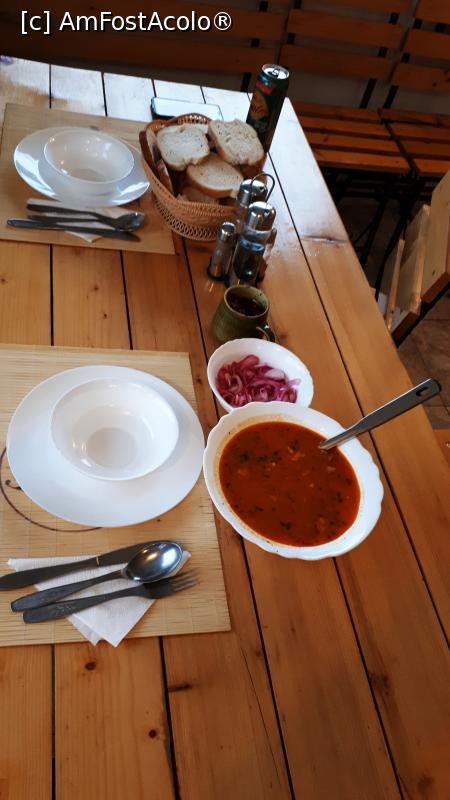 [P14] Vila Iulian, Stațiunea Parâng, restaurant cu mâncare excepțional de gustoasă -ciorbă de fasole cu ciolan afumat, cu multă carne, cu salată de ceapă roșie și ardei iute murat