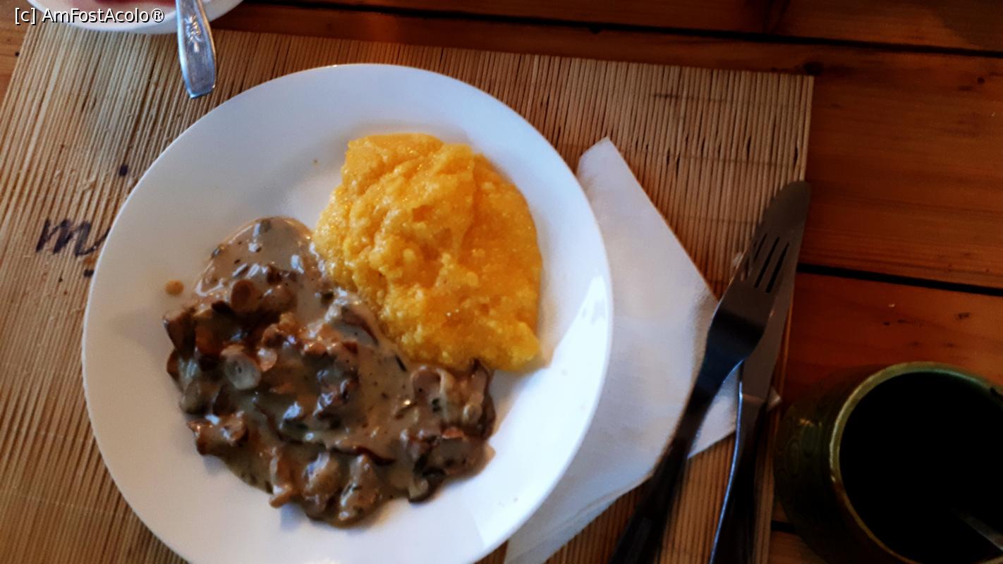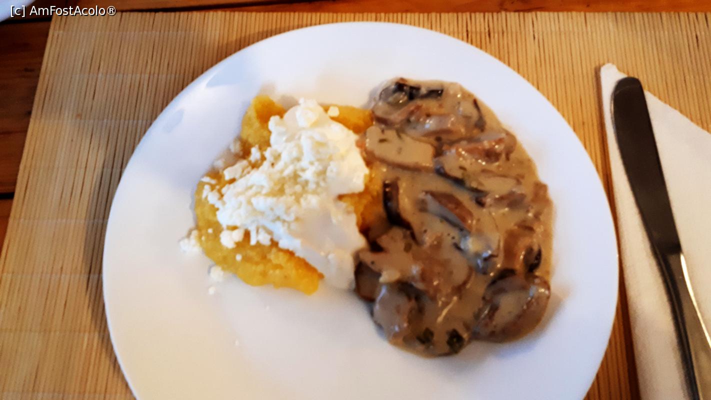 [P15] Vila Iulian, Stațiunea Parâng, restaurant cu mâncare excepțional de gustoasă - castron cu ciulama de hribi cu mamaligă cu smântână și brânză de burduf