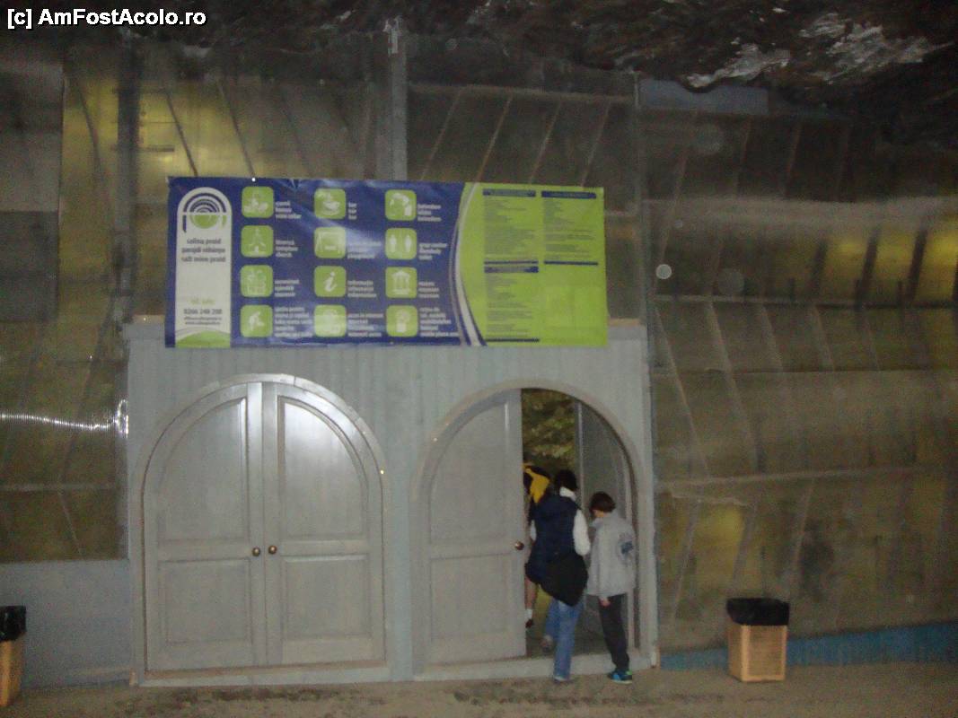 [P04] Am ajuns la căpatul traseului parcurs cu autobuzul. Vom coborî o scară lungă aflată dincolo de aceste uși pentru a ajunge în salina propriu-zisă.
