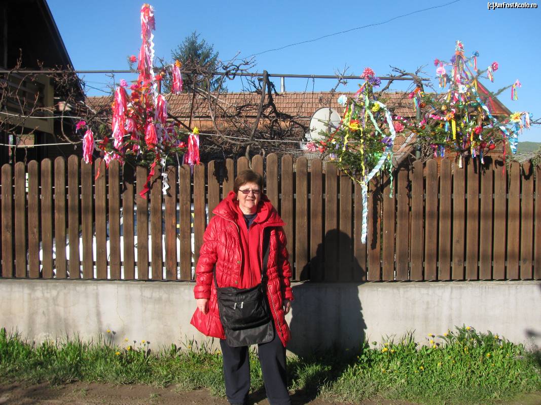 [P14] Brazii impodobiti de Pasti, fixati pe gardurile localnicilor, sunt adusi de cei ce vor veni in ziua de luni la stropit cu parfum, fiind adusi de catre feciori fetelor sau de catre parintii copiilor mai mici. Acesti brazi vor fi "rascumparati" de gazde cu bani, oua vopsite, cozonaci, prajituri.
