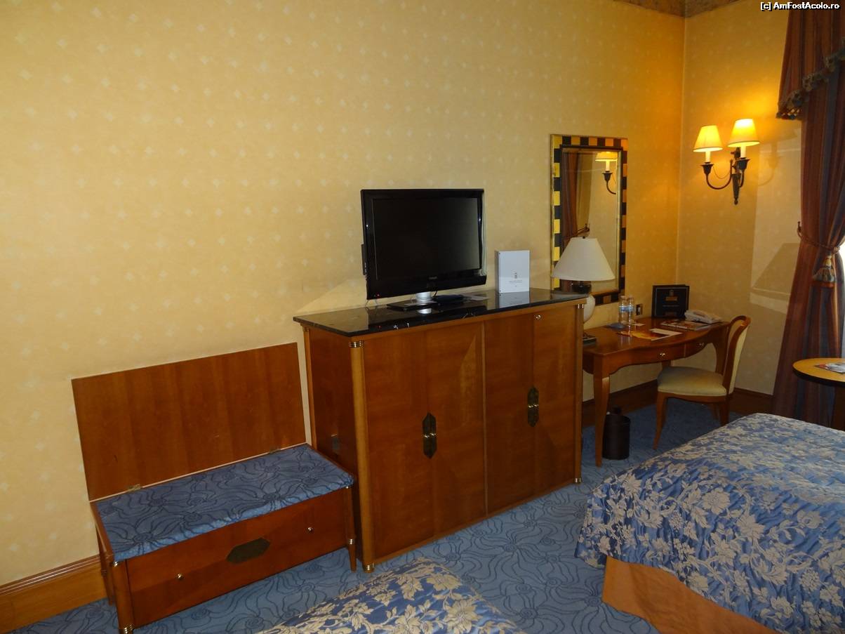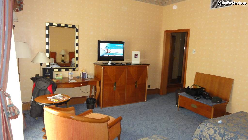 [P12] Aici se poate vedea dotarea camerei. În dulăpiorul pe care stă televizorul se află seiful și minibarul.