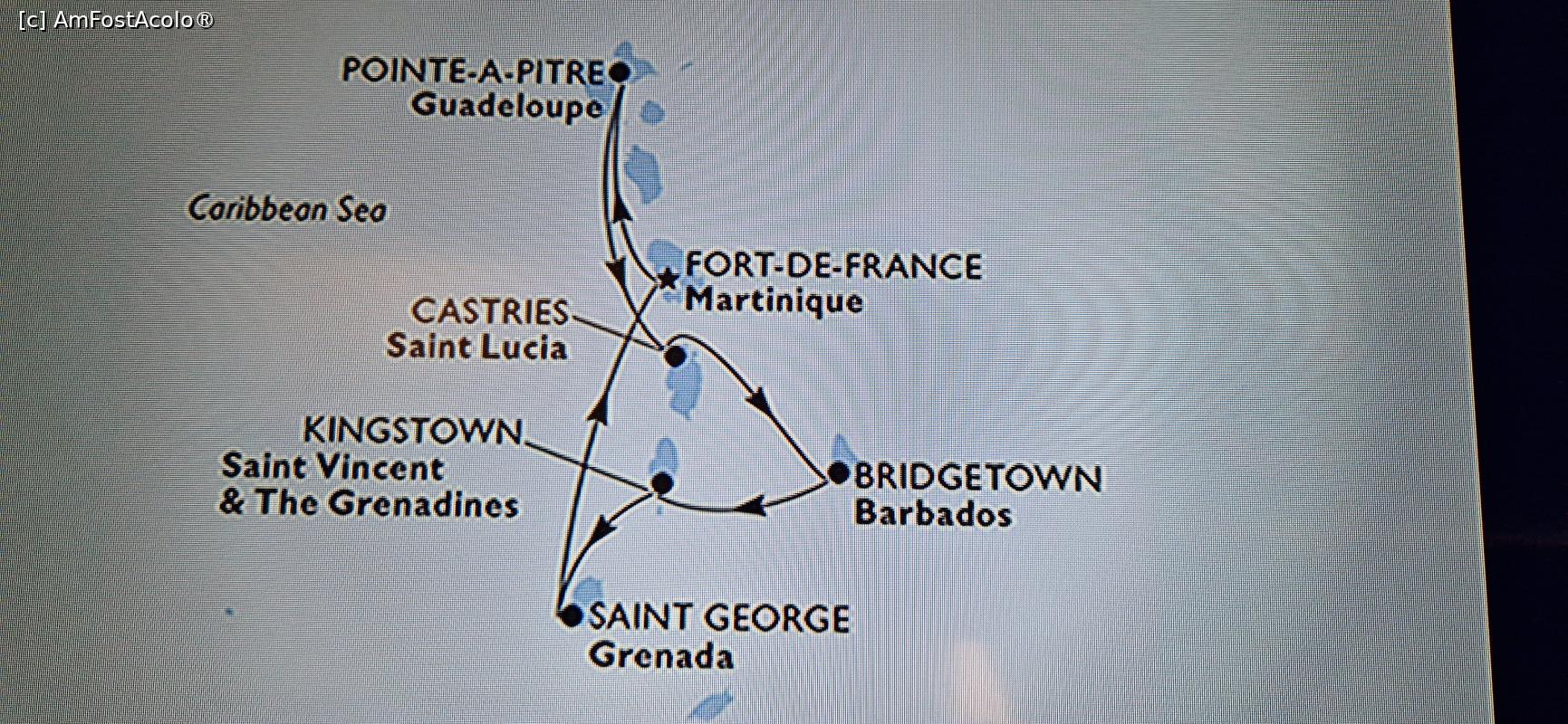 [P83] 83. Traseul făcut în croaziera noastră pe vasul MSC Virtuosa, în Caraibe; insula Saint Vincent & Grenadines este între Saint Lucia și Grenada.