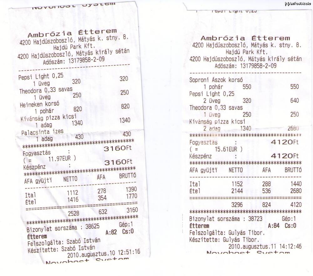 [P11] Restaurantul Parc Hotel Ambrozia - notele de plata din cele 2 zile.