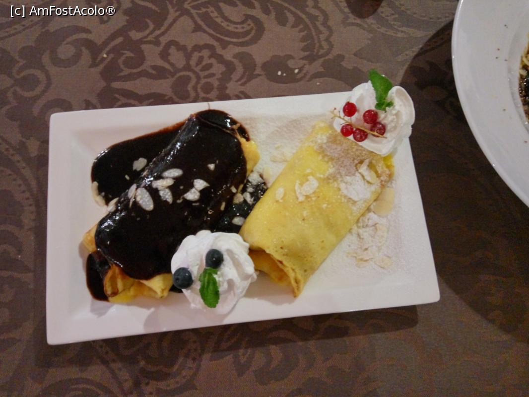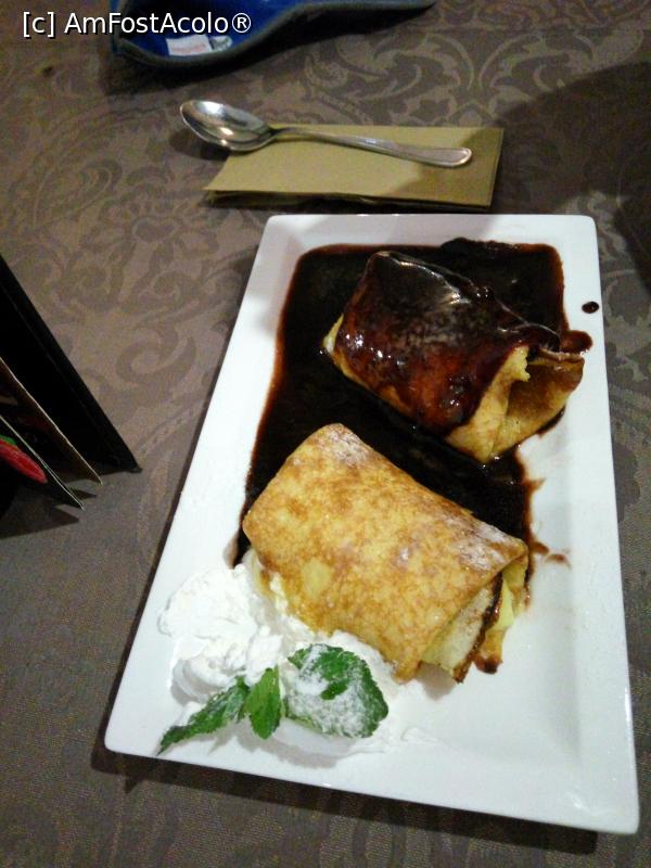 [P16] Restaurant & Pizzerie Szifla Etterem, din Hajduszoboslo, clatite Szilfa, cu mai mult sos si ananas... cu o zi inainte, ananasul a lipsit, desi era trecut la ingrediente
