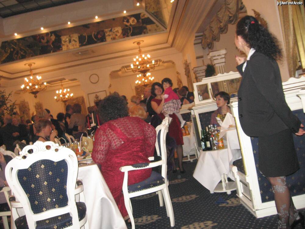 [P08] Fetita de vreo patru anisori a dansat cu mamica pana la 2-3 noaptea; chelnerita, in picioare, era tot timpul atenta la servit.