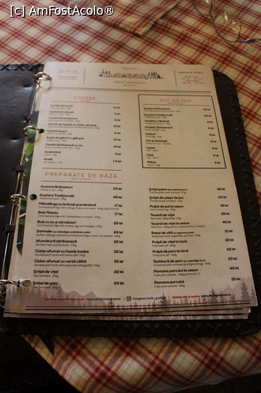 [P21] Moieciu, Restaurantul Cheile Grădiștei, Meniul a fost bine studiat (deformare profesinală)