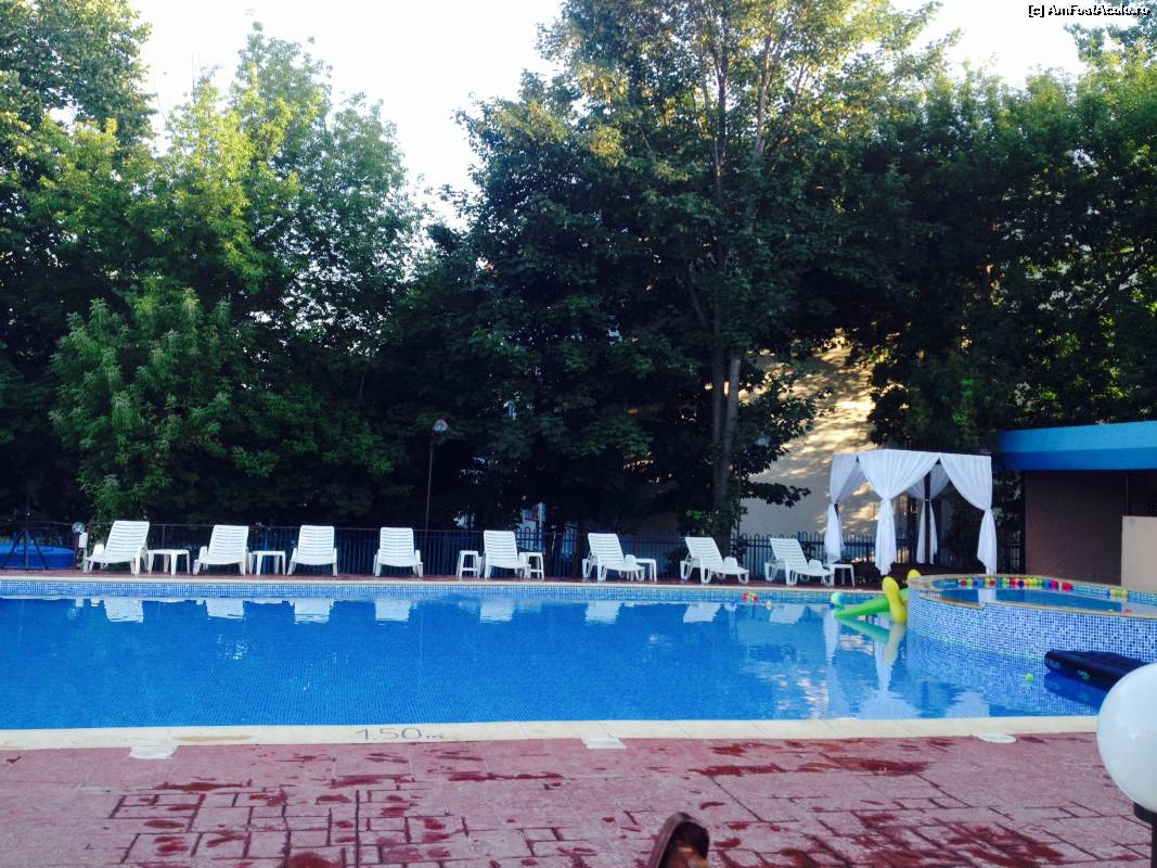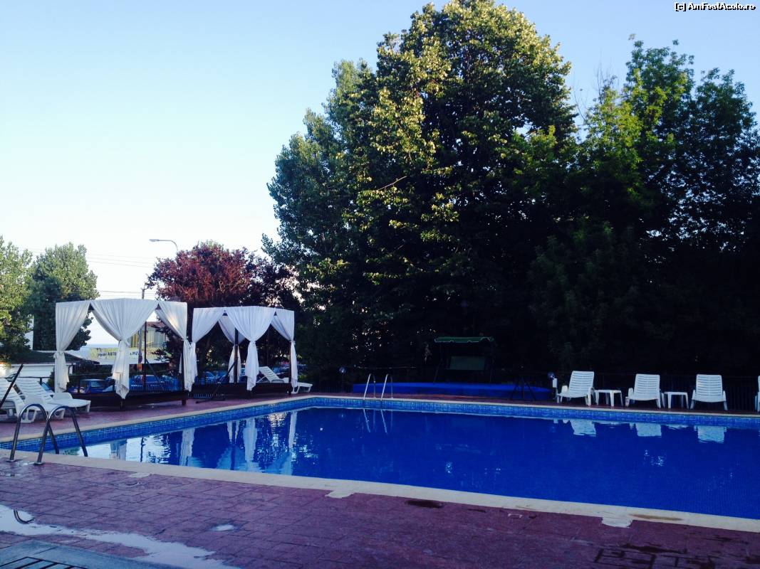 ![[P08] Piscina seara. In stanga sunt alte 2 baldachine, in fata o bancuta cu leagan. Adancimea piscinei intre 1-1.95 m. La copii, apa este mai mica firesc. » foto by adynutza26