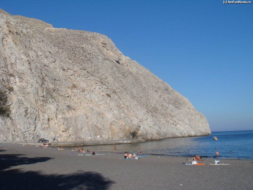 [P01] 1. Plaja din Kamari este chiar foarte neagră. Totuși, din loc în loc are și o pată de culoare.