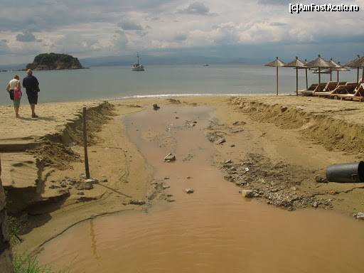 [P22] Plaja Troulos dupa furtuna. Se vede insula sub forma de dom care da numele plajei. Se vede si in ce hal a rupt suvoiul de apa din plaja. sa vedem daca se reface pana la anul!